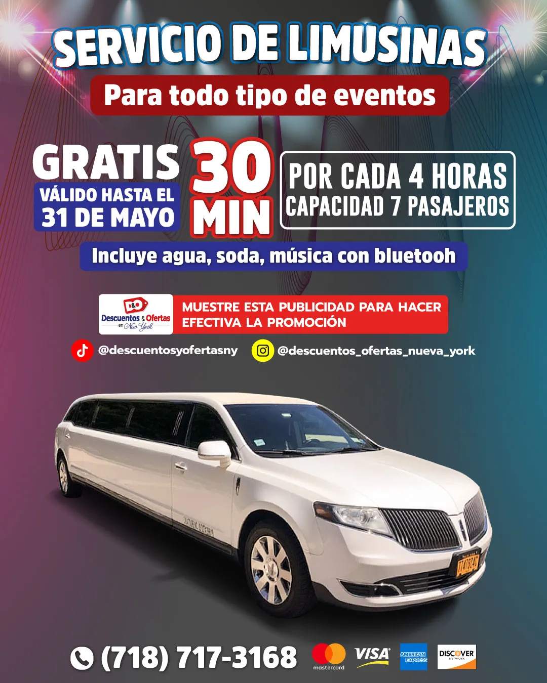 ¡PROMO VIP! 30 MINUTOS GRATIS EN TU LIMUSINA | VIP PROMO! 30 FREE MINUTES IN YOUR LIMOUSINE.
